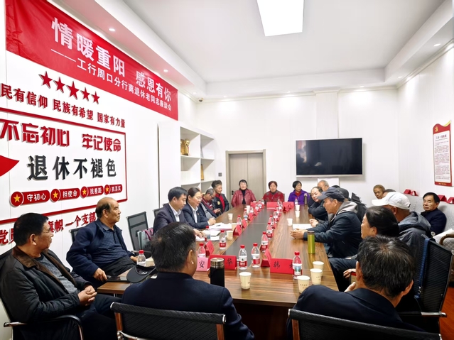 10月29日上午,工行周口分行组织召开离退休老同志座谈会,近30位退休老同志共度重阳佳节。