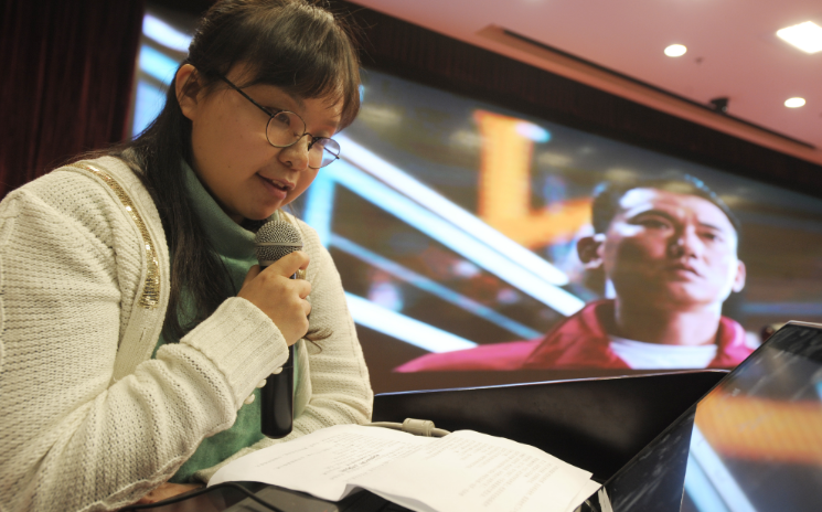 “蘑菇云腾空而起,中国第一颗原子弹爆炸成功。高远看向天空,脸上露出了欣慰和感动的笑容……”送别观影的盲人朋友,武汉市青山区新沟桥街道蒋家墩社区干事杜诚诚旋即投入下一部电影的解说稿撰写。