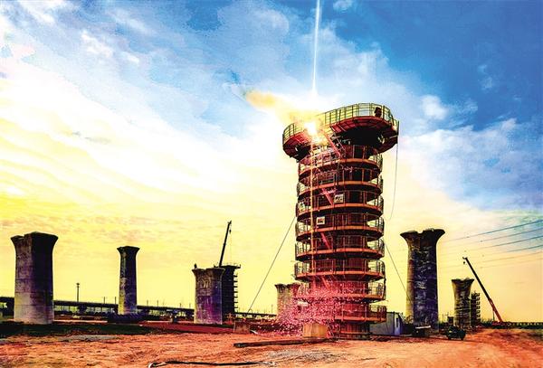 12月7日傍晚,在建的平漯周高铁周口段项目太清路北侧工地上,工人们正在桩柱上焊接构件,电弧光犹如探照灯照耀天空,散落的电弧花点缀了夕阳西下的美景。