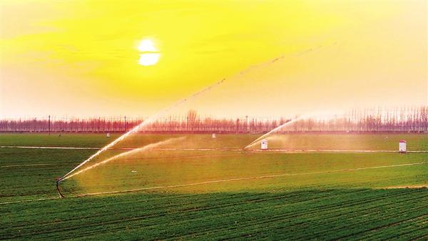 12月8日,在扶沟县大李庄街道中营村的农田里,农户正抓紧趁晴好天气为冬小麦浇灌封冻水。