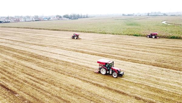 10月14日,市城乡一体化示范区许湾街道孔庄村村民在田间耕作。连日阴雨暂歇,农户们利用晴好天气,与时间赛跑,抓紧秋播。