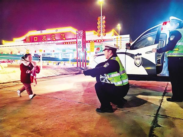 万家团圆共庆佳节,警灯闪烁守护平安。2月16日除夕之夜,在宁洛高速公路周口段巡逻任务结束之际,周口市公安局高速公路交通警察支队一队民警赵轩,迎来了前来探望拜年的女儿。