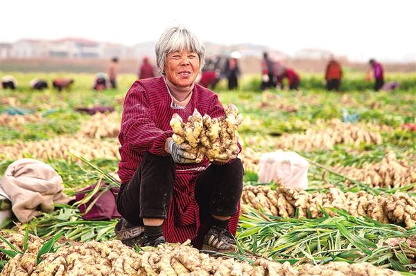 11月16日,淮阳区曹河乡朱庄行政村的农户们忙着采收、分拣、搬运饱满肥硕的生姜。该村四百余亩生姜迎来丰收,预计亩产超万斤,将为当地农户带来可观收益。