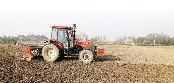11月9日,在淮阳区高标准农田示范区,一台东方红拖拉机牵引着复式播种机在地里穿梭。