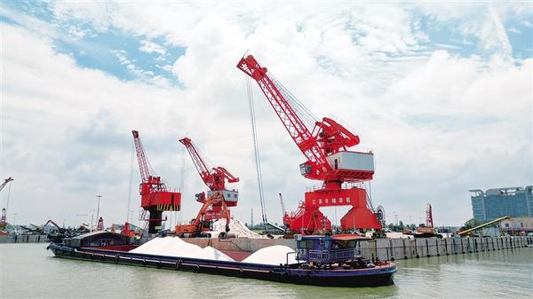 初冬时节,周口中心港范营作业区一片繁忙。岸桥如巨人般屹立,将集装箱精准抓取安置;集卡在堆场间穿梭,鸣笛声与机械轰鸣声交织出港口特有的节奏;传送带隆隆作响,不远处的货船正在卸货,自动装卸机一次次深入船舱,将物料转移至卡车上……如此火热的建设场景,是我市以项目建设推动高质量发展的一个缩影。