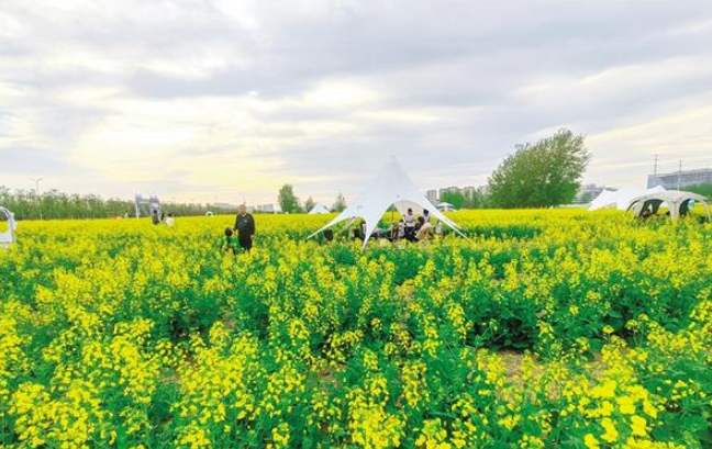 进入4月份,市城乡一体化示范区(简称示范区)引黄调蓄湖迎来全年最佳赏景期,油菜花海烂漫绽放,湖光澄澈秀美,这里已然成为市民近郊踏青、遛娃散心的首选地。