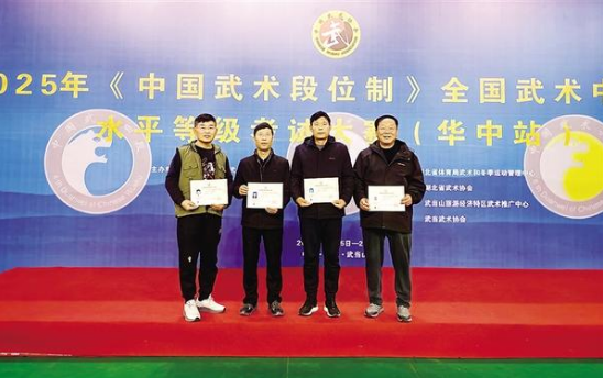 11 月 28 日,淮阳区选手王锦桥、陈百勋、段彦军、彭中杰(从左至右)在领奖台上合影。