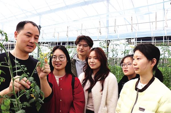12月7日,扶沟蔬菜研究院的技术员向河南农业大学园艺学院的学生传授番茄管理技术。