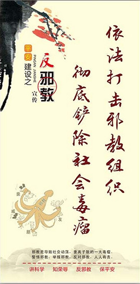 据中国反邪教网报道,近日江西九江一“法轮功”人员因在微信朋友圈中传播散布邪教信息,被判处有期徒刑四年。无邪君经常强调,中国政府处理邪教的政策是,教育挽救绝大多数,依法打击极少数,但这绝不意味着,突破法律底线的人可以不受到法律的惩处。……[详细]