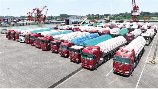 沙颍河畔,秋意正浓。一艘艘满载货物的船舶踏浪而行,驶向周口港范营作业区。码头上,龙门吊高耸入云,运输车辆川流不息,工人们忙碌作业,呈现出一派欣欣向荣的景象。