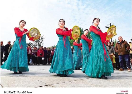 10月21日,淮阳区伏羲文化广场热闹非凡,久违的晴天让人们难掩喜悦之情,民间担经挑队、秧歌队及各舞蹈队载歌载舞,欢快舞步伴着灿烂笑容,尽显活力。