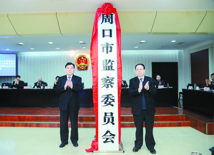 刘继标、刘国连为新成立的周口市监察委员会揭牌,标志着我市深化国家监察体制改革试点工作迈出了关键性一步,标志着肩负全市公职人员监察职责的新部门——周口市监察委员会正式成立。①2