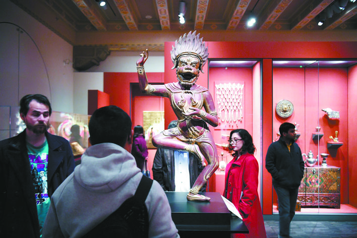 1月7日,参观者在美国旧金山亚洲艺术博物馆观看展品。