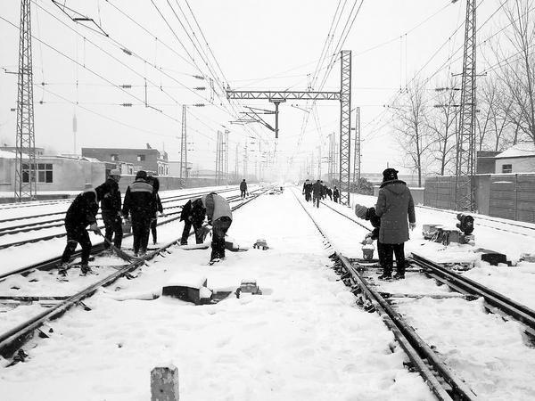 1月24日下午,大雪再次光临我市。据了解,铁路运输在这次降雪中受到的影响不大。针对本次降雪,漯阜铁路有限公司提前调配人员和物资,充分发挥党团员突击队的带头作用,各级党员干部带领职工在道岔、接触网、进出站通道等除雪打冰作业战场连续奋战。由于准备充分,应对得力,本轮降雪未对漯阜铁路运输造成较大影响,所辖区域内客运列车运行正常。②7