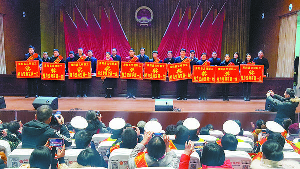 县委副书记、政法委书记岳新坦主持表彰大会,县委常委、宣传部长谢留定宣读了获奖人员名单。(陈述 文/图)
