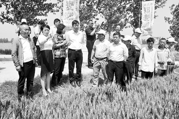 5月13日上午,来自全省各地的农学博士、小麦专家、种子经销商等百余人在商水县舒庄乡万亩良种繁育基地,观摩省农科院院县合作项目小麦新品种郑麦0943和7698的生长情况。