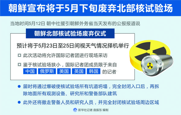 朝鲜宣布将于5月下旬废弃北部核试验场