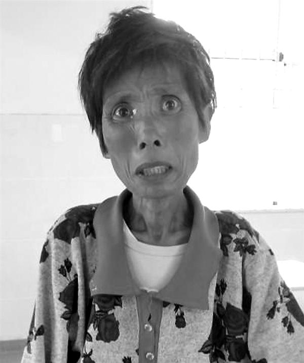 受助人员情况介绍:疑似精神病障碍,身高156cm,体重20公斤 ,头发凌乱,上身穿白底带玫瑰花红色领子毛衣 ,下身穿黑色裤子,不说话,较恐惧。