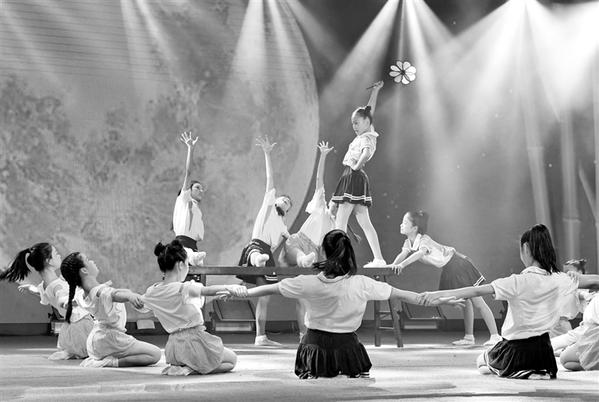 8月9日,连江县第二实验小学学生在表演舞蹈《山里月,外山圆》。