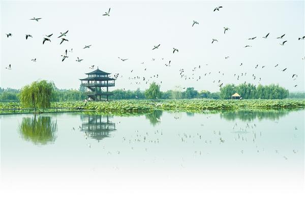 京杭湿地莲天碧,