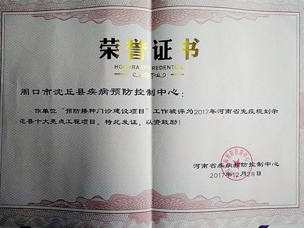 “硬件”建设、规范管理和服务水平的提升,构成了免疫规划“沈丘经验”的主体,正是在这一经验的探索和实践,沈丘免疫规划工作获得了一个又一个殊荣和奖励:在2017年年底省卫计委公布的河南省首批24个免疫规划示范县(市、区)中,沈丘不仅赫然在列,还成为因在创建工作中成绩突出受到通报表扬的5个县(区)之一;免疫规划门诊建设项目被省疾控中心评为全省十大亮点工程;在2017年7月14日举办的全市“妈妈课堂”演讲比赛中,沈丘获得了团体一等奖并包揽个人前两名的优异成绩;在2017年12月26日举办的全省“妈妈课堂”演讲比赛中,石槽集镇接种门诊张晓洁获得个人一等奖;今年,沈丘还获得了省疾控中心奖励的冷链运输车一辆、冰箱45台和60万元现金。