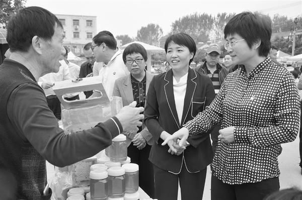 启动仪式结束后,该县举办了全县科技成就展。图为展台上摆放的特色农产品吸引不少人参观、品尝、选购。②5记者 付永奇 摄