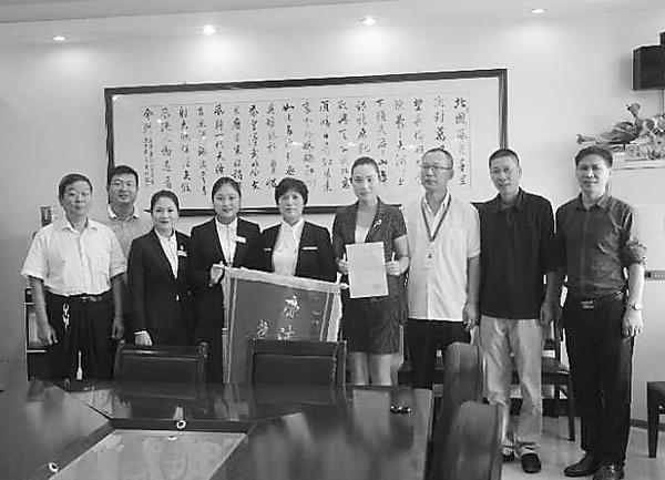 图为周口市体育宾馆向市卫生计生监督局赠送锦旗