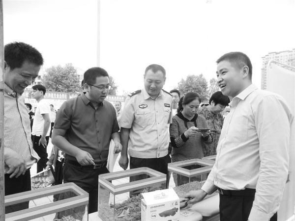 9月22日,为庆祝第一个中国农民丰收节,沈丘县专门举办了农业种植养殖成果展,吸引了很多群众前来观看。图为成果展现场。 谢心灵 摄