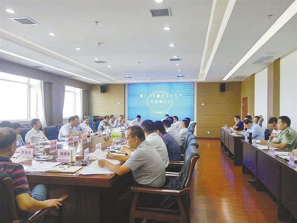 本报讯 (记者 张劲松 文/图) 为层层压实安全生产责任,提升安全生产水平,9月21日下午,东新区召开安全生产对话谈心会(如图)。区党工委书记闫立超、管委会主任张建党出席会议。