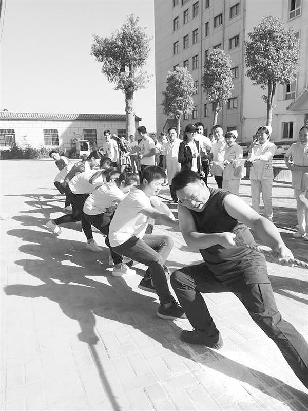 为激发职工的团队合作意识,增进友谊,9月29日下午,周口人合医院举行了职工运动会。图为拔河比赛现场。王明见 摄