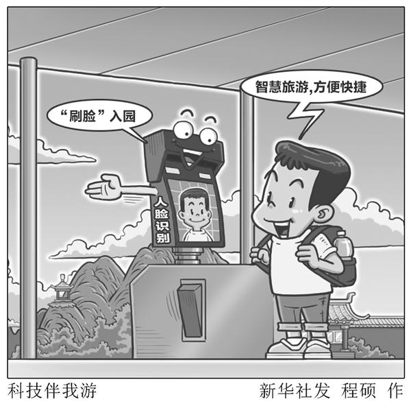 在一台机器面前,游客用身份证进行扫描识别,扫码支付,到了门口稍做停留后,就能进入园区。这是全国60余个景区推出的智慧旅游服务项目:通过人脸识别技术,游客入园时机器会自动扫描其脸部,几秒钟就可以完成确认。这样的方式相对于传统检票节省了大量人力和时间,也避免了假票、逃票等问题。新华社发 程硕 作