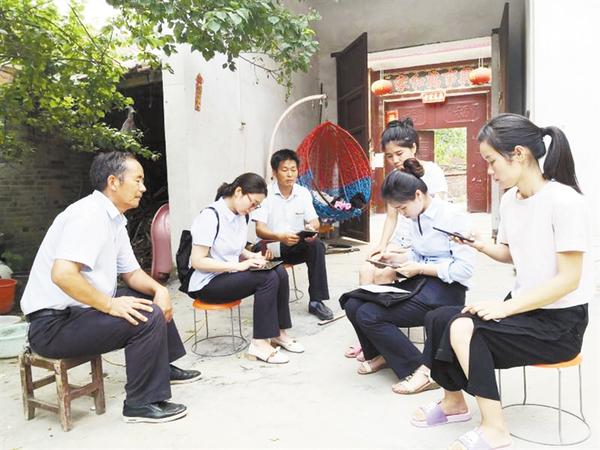 项城农商银行整村授信工作人员进村入户为村民进行信息采集,提供线上贷款服务。