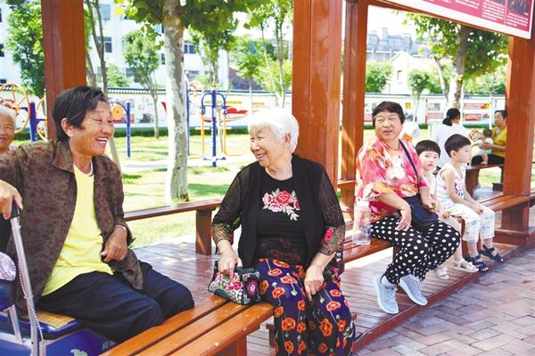 川汇区小桥办事处复兴街居民在游园内休闲。 记者王映 摄