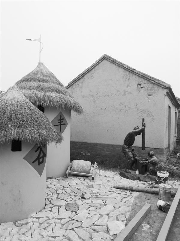 如今,孙嘴的美是看得见的:绿色的草坪簇拥着池塘碧水,修葺一新的屋舍房顶铺着满是乡野情趣的茅草,黄色腰身、贴着“丰收”字样的粮囤依偎在茅草屋旁边,沿着岸堤的小路走上来,收入眼底的是颍河风景,转身回望,便是正在建设着的孙嘴食堂、孙嘴村史馆……