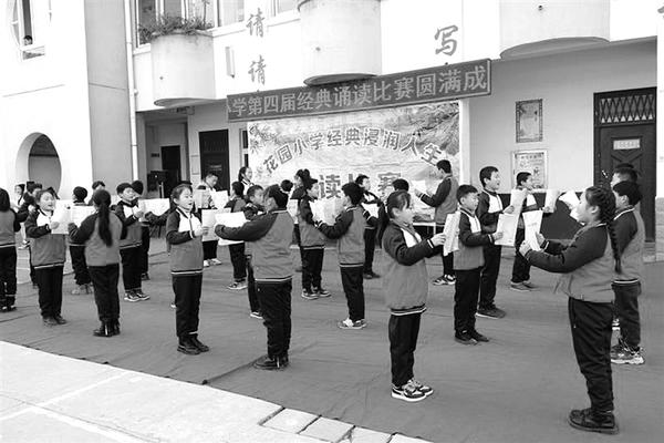本报讯 (记者 王珂 文/图) “人之初,性本善。性相近,习相远……”“天对地,雨对风。大陆对长空,山花对海树,赤日对苍穹……”12月10日,扶沟县城关镇花园小学校园不时传出学生的诵读声,吸引路人驻足倾听。