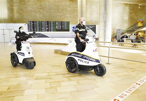 ① 12月23日,警察在以色列特拉维夫本古里安机场大厅巡逻。为应对新发现的变异新冠病毒,从23日起,以色列禁止非本国公民入境。新华社发