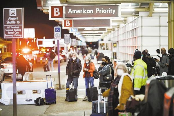② 12月23日,在美国国家机场,旅客在等出租车。因美国圣诞假期来临,美疾控中心呼吁民众假期居家以防新冠传播。新华社发
