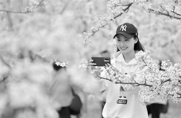 4月11日,游客在园区内拍摄梨花。