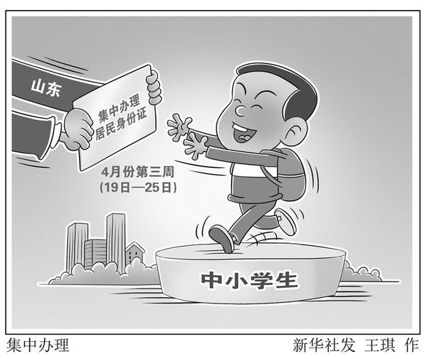 山东近日下发通知,将在4月份第三周(19日—25日)组织开展为全省中小学学生集中办理居民身份证(以下简称“集中办证周”)活动,以保证全省中小学校学生顺利参加会考和中考、高考。新华社发 王琪 作