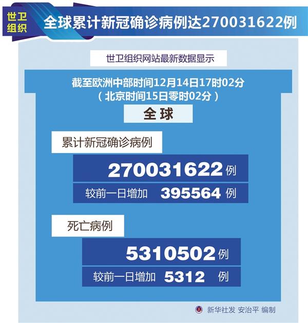 世卫组织:全球累计新冠确诊病例达270031622例