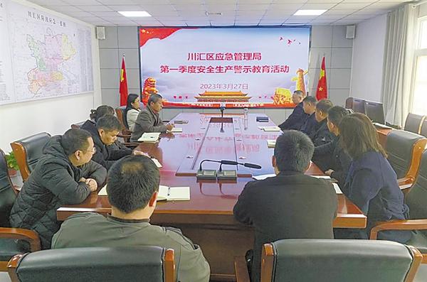 为深入贯彻落实市委、市政府关于安全生产工作的重要部署,3月27日,川汇区应急管理局党委书记、局长穆磊组织召开第一季度安全生产警示教育会议,该局党员干部职工集体观看《安全生产执法和行刑衔接典型案例》宣传片。记者 王凯 通讯员 夏路歌 摄