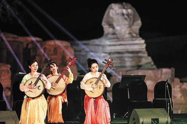 3日晚,由中国文化和旅游部、埃及旅游和文物部、中国驻埃及大使馆共同主办的中国-埃及民族音乐会在吉萨金字塔景区举办。中国中央民族乐团艺术家和埃及民族音乐家联袂为现场观众献上精彩演出。
