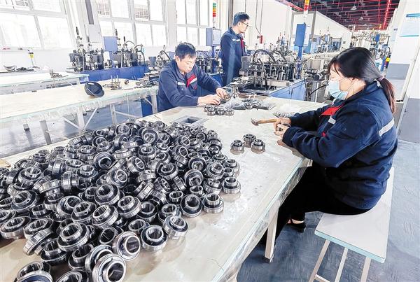 4月14日,坐落于西华县智能装备精密制造产业园的河南睿锋传动机械有限公司的工人们正在组装部件。