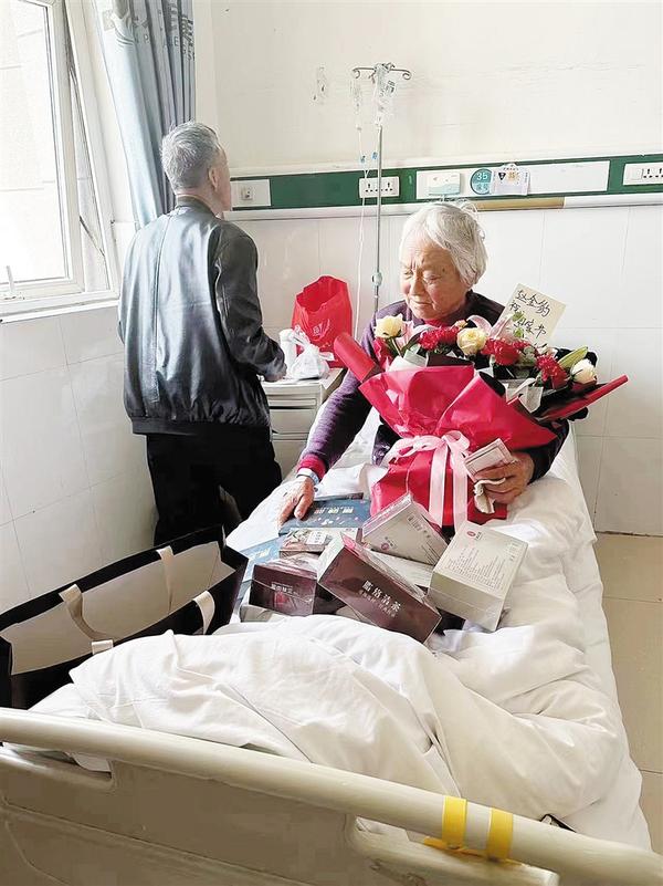 今年母亲节当天一大早,赵金豹就订购了一束鲜花,前往烈士许献伟家中看望其父母。看到大门紧闭,与许献伟的父亲联系后得知,许献伟的母亲因病住院了,赵金豹马上赶到医院看望。