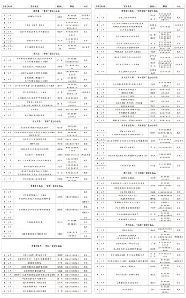 周口市“党的创新理论宣讲”行业小纵队宣讲活动计划