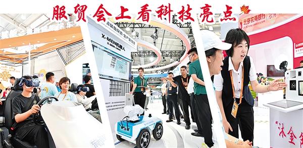 2023年中国国际服务贸易交易会于9月2日至9月6日在北京举办,众多科技产品亮相展区,吸引观众驻足参观。