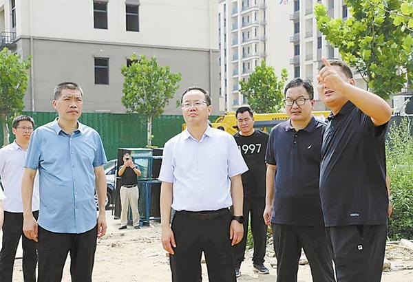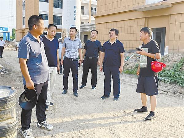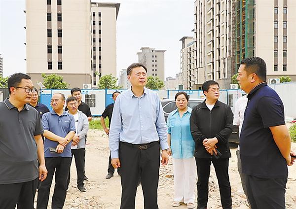 副区长范恒礼(右二)查看学校建设进度。