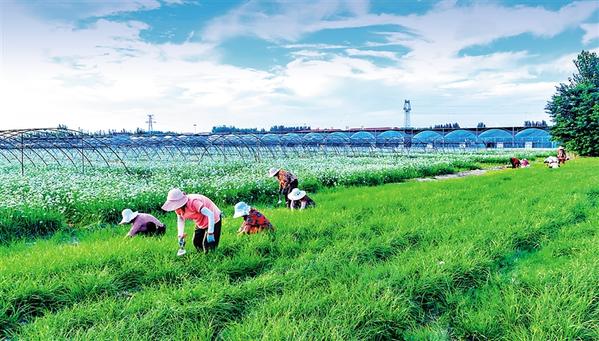 9月8日,在扶沟县韭园镇南北绿久科技示范园的韭菜种植基地里,村民正忙着除草。据了解,目前,南北绿久科技示范园培育上市韭菜品种106个,年销售韭菜种子(苗)130吨,占据全国75%的市场份额。