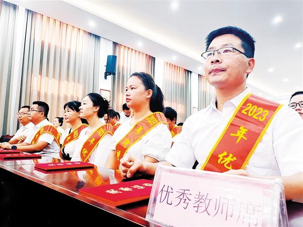 9月6日,扶沟县柴岗乡召开庆祝第39个教师节大会,表彰45名优秀教师。图为受表彰的教师。记者 金月全 摄