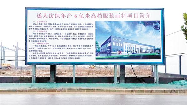 该项目预计总投资10.5亿元,总建筑面积20万平方米,分两期建设。项目一期投资3.8亿元,计划配置1600台高速喷水织布机、80台加弹机、15台氨纶包覆一体机等各类纱线工艺处理及各档次基础坯布生产线,计划年产6亿米各类高档服装面料。项目一期建成后,预计每年可实现销售收入10亿元,实现税收3000万元。